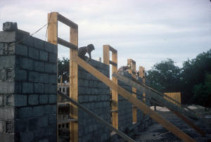 Roberto Moreno, Jr., chats with a team member during a break. |